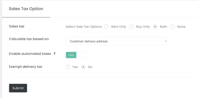 RentMy accounts with eligible plans can automatically calculate sales taxes for orders no matter where your Customer lives.